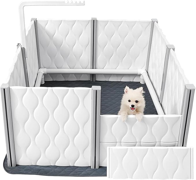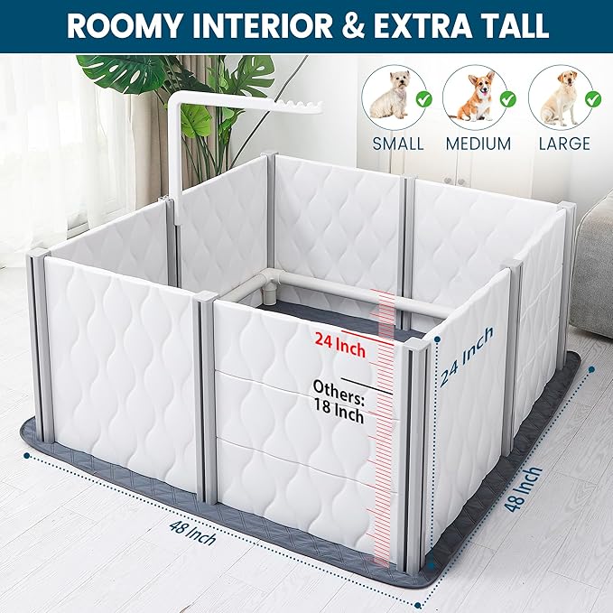 Senneny Extra Tall Whelping Box - Dog Pen with Whelping Pad, Lamp Holder - Supplies for Large, Medium, Small Dogs & Puppies (White, 1-Room(48" L x 48" W x 24" H))