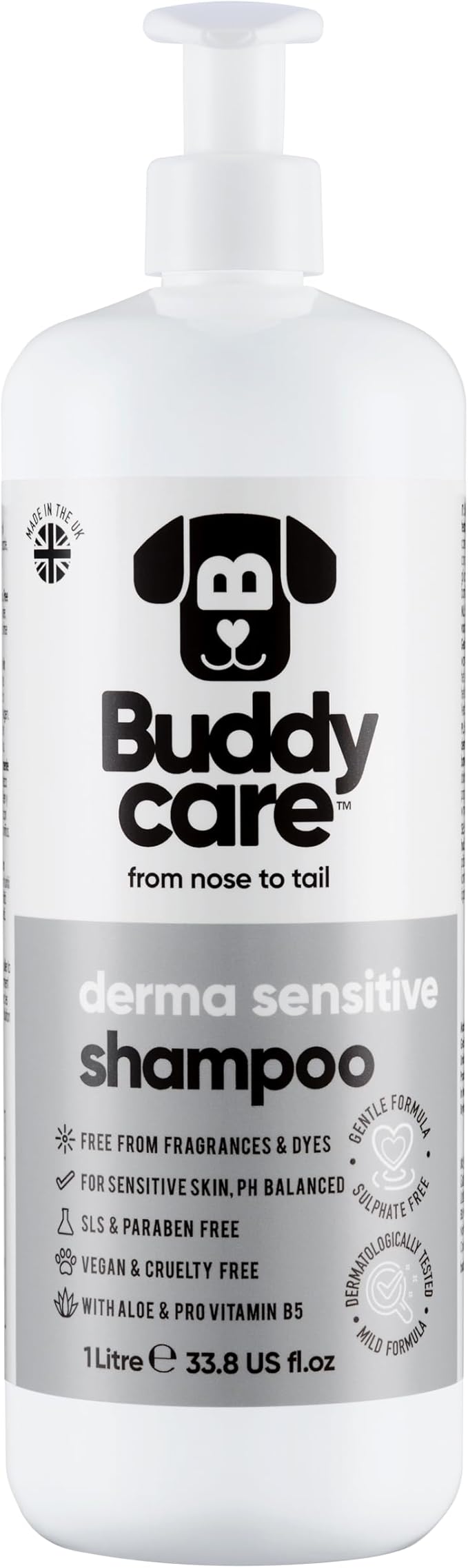 Derma Sensitive Dog Shampoo by Buddycare | with Aloe Vera and Pro Vitamin B5 (33.8oz)