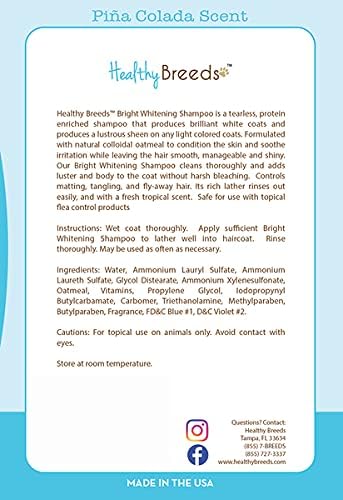 - pH balanced! Healthy Breeds offers a high-quality bright whitening shampoo that moisturizes and nourishes your dog’s skin and coat!