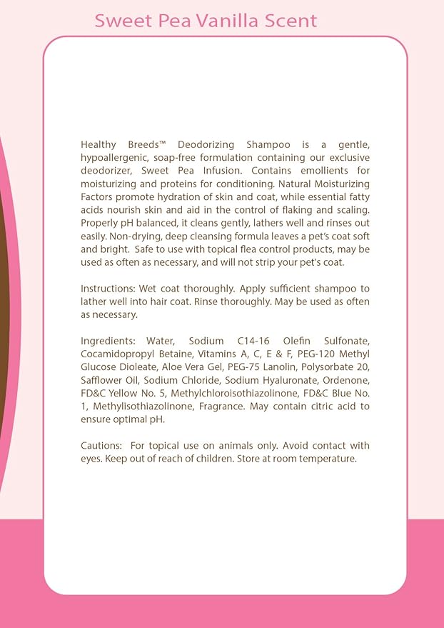- Hypoallergenic Formula Is Safe For Use With Topical Flea Control Treatments. Healthy Breeds Deodorizing Shampoo Is Gentle And Soap-Free Leaving Your Dog’S Coat Silky And Lustrous!
