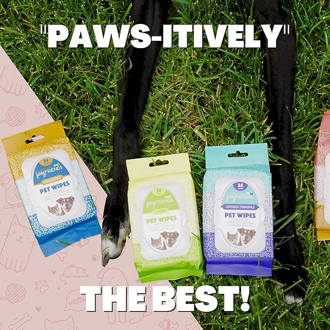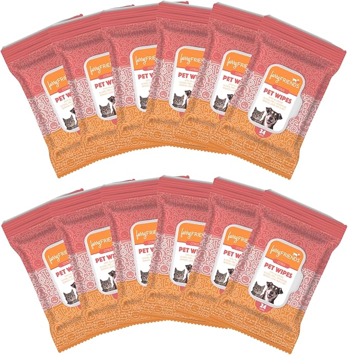 FurryFriends Pet Wipes | Citrus Scented | Hypo-allergenic | Alcohol Free| Deodorizing | Removes Loose Hair & Dirt | Incredibly Clean | 12 Pack