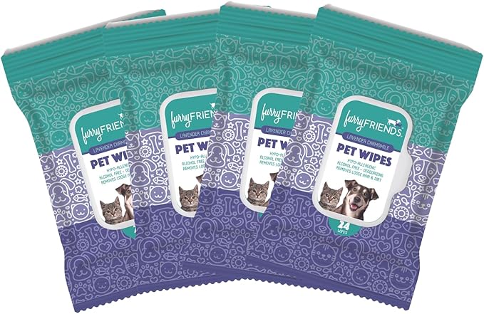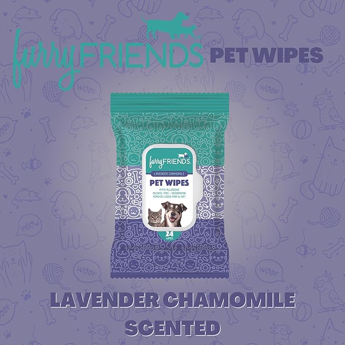 FurryFriends Pet Wipes | Lavender Chamomile Scented | Hypo-allergenic | Alcohol Free| Deodorizing | Removes Loose Hair & Dirt | Incredibly Clean | 4 Pack