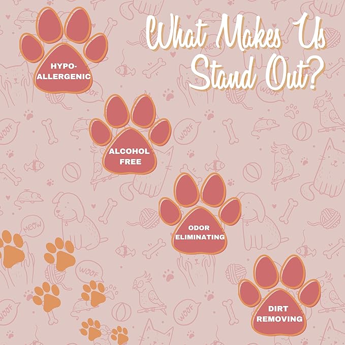 - PET WIPES: Our wipes come in various gentle scents and are hypo-allergenic, alcohol free, and deodorizing.