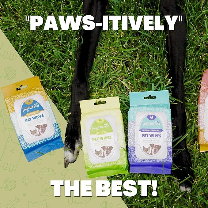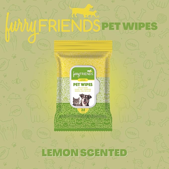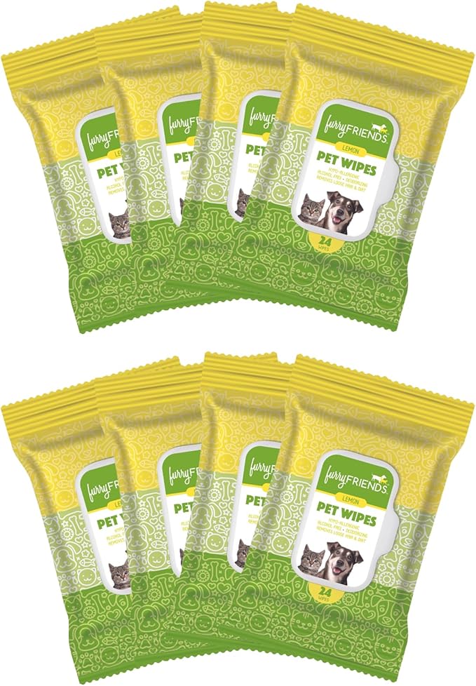 FurryFriends Pet Wipes | Lemon Scented | Hypo-allergenic | Alcohol Free| Deodorizing | Removes Loose Hair & Dirt | Incredibly Clean | 8 Pack