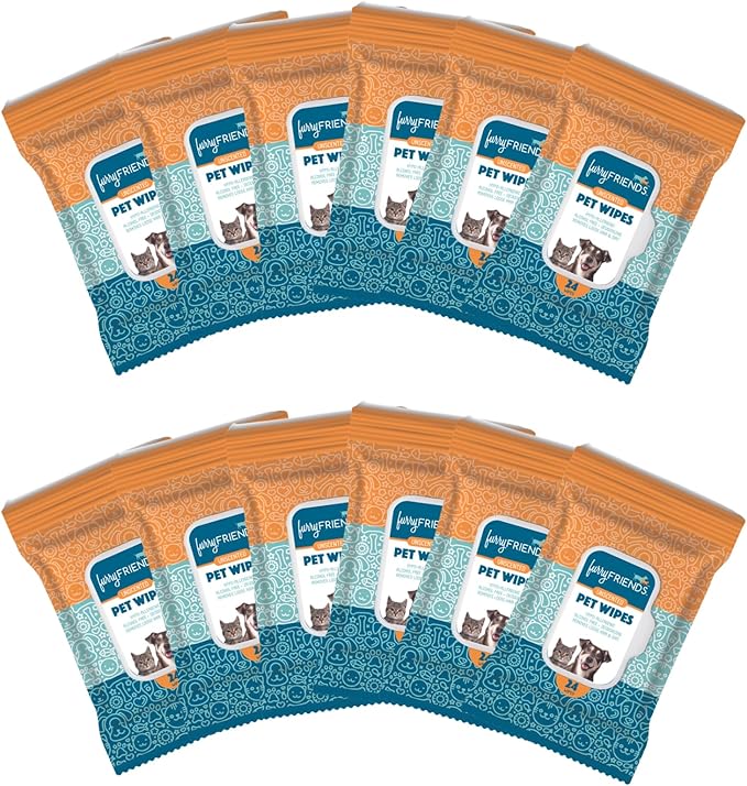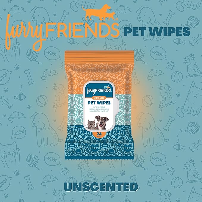 FurryFriends Pet Wipes | Unscented | Hypo-allergenic | Alcohol Free| Deodorizing | Removes Loose Hair & Dirt | Incredibly Clean | 12 Pack