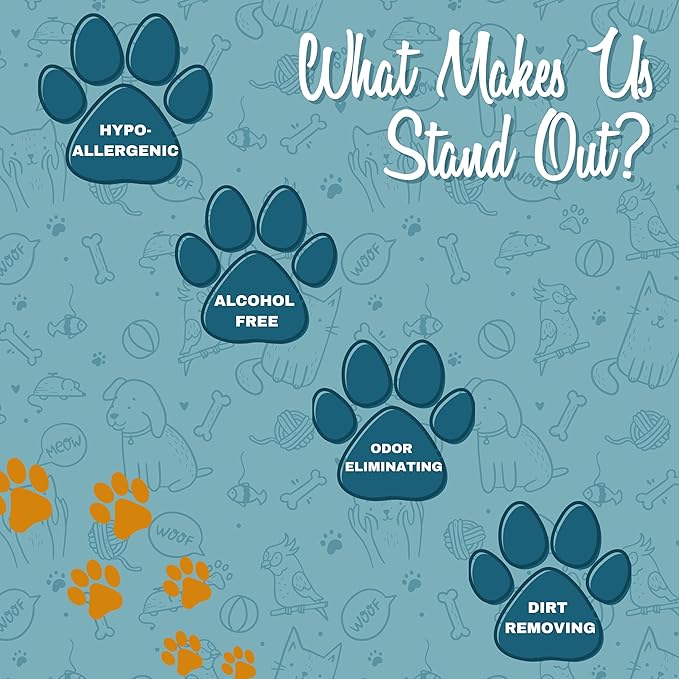 - PET WIPES: Our wipes come in various gentle scents and are hypo-allergenic, alcohol free, and deodorizing.