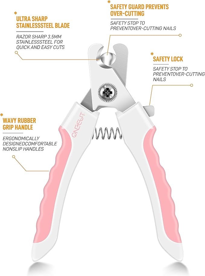 OneCut 4.7" Small Dog & Cat Nail Clipper Stainless Steel Cat Claw Trimmers for Rabbits, Guinea Pigs, Birds, Puppies, Kittens and Small Animals Pet Nail Clipper for Professional and Home Use (Pink)