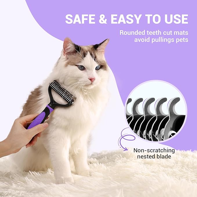 - All in 1 Cat Dog Undercoat Rake: Dematting, deshedding and brushing all at the same time is efficient and time-saving, while your dog gets a great experience. Sturdy, durable and comfortable handle is easy to hold and feels great in your hand