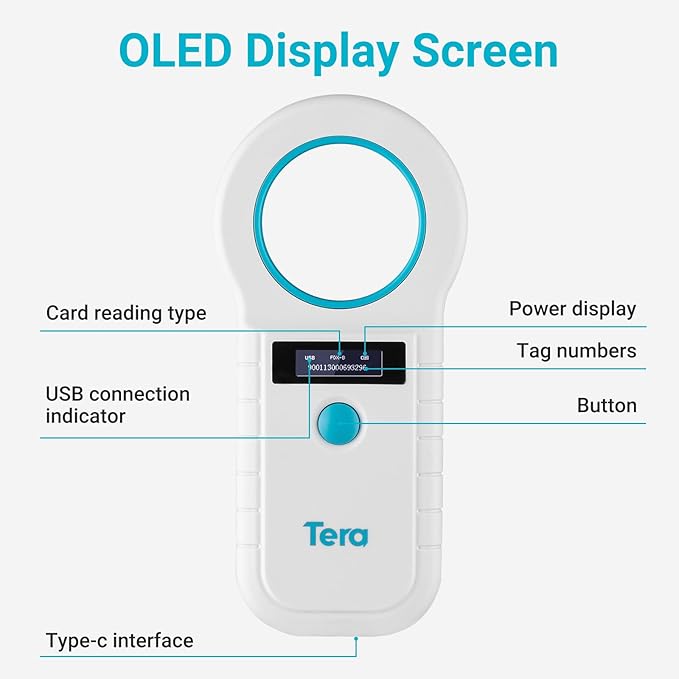- 【OLED Display Screen】Tera Animal Tag Scanner uses high brightness OLED display ensures optimal visibility, allowing you to efficiently track and identify animals without any hindrance or inconvenience.