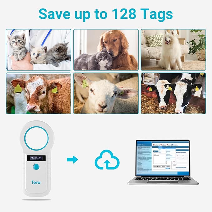 - 【Wireless Connection】Tera pet scanner has extremely fast scanning speed and can save up to 128 tags information, you can upload these information to your computer via USB cable or wireless 2.4G, offering you the flexibility to switch between the two options as per your preference. The dual-frequency mode supports 134.2KHz and 125KHz, increasing the flexibility and compatibility in reading and identifying RFID tags.