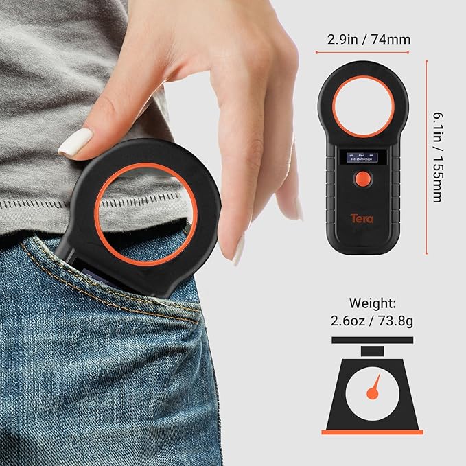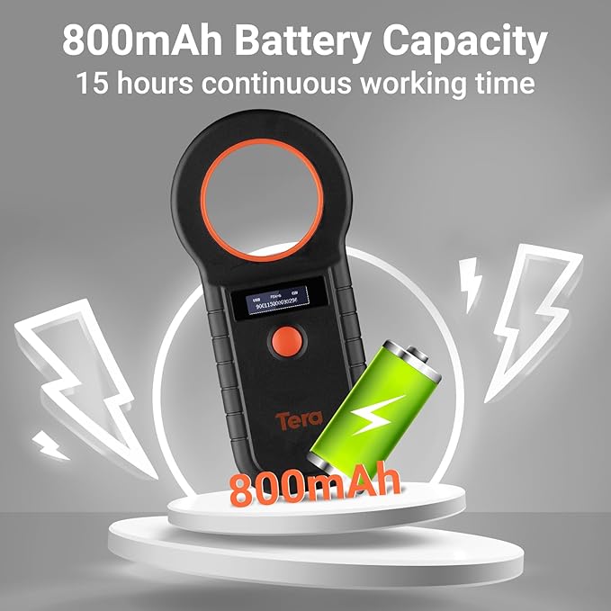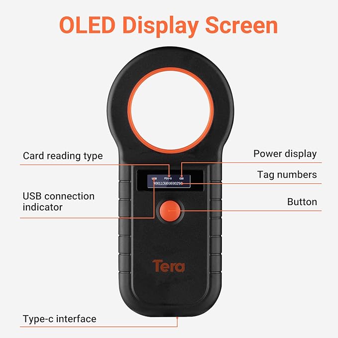 - 【OLED Display Screen】Tera Animal Tag Scanner uses high brightness OLED display ensures optimal visibility, allowing you to efficiently track and identify animals without any hindrance or inconvenience.