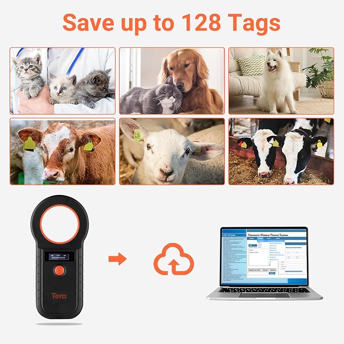 - 【3-in-1 Connections】Tera Pet Scanner has extremely fast scanning speed and can save up to 128 tags information. You can upload these information to your computer via USB cable, wireless 2.4G or BT, offering you the flexibility to switch between the three options as per your preference. The dual-frequency mode supports 134.2KHz and 125KHz, increasing the flexibility and compatibility in reading and identifying RFID tags.