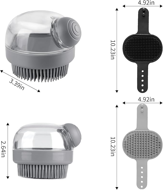 - 🐾【2 PCS Adjustable Dog Wash Brush】This dog scrubber for bath is ergonomically designed with a perfect adjustable ring handle, which can adapt to different sizes of hands, easy to hold. 2 dog bath brush scrubbers are used together, it can effectively remove pet hair while bathing or massaging, giving your pet an excellent bathing experience.