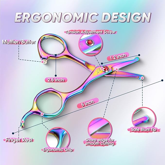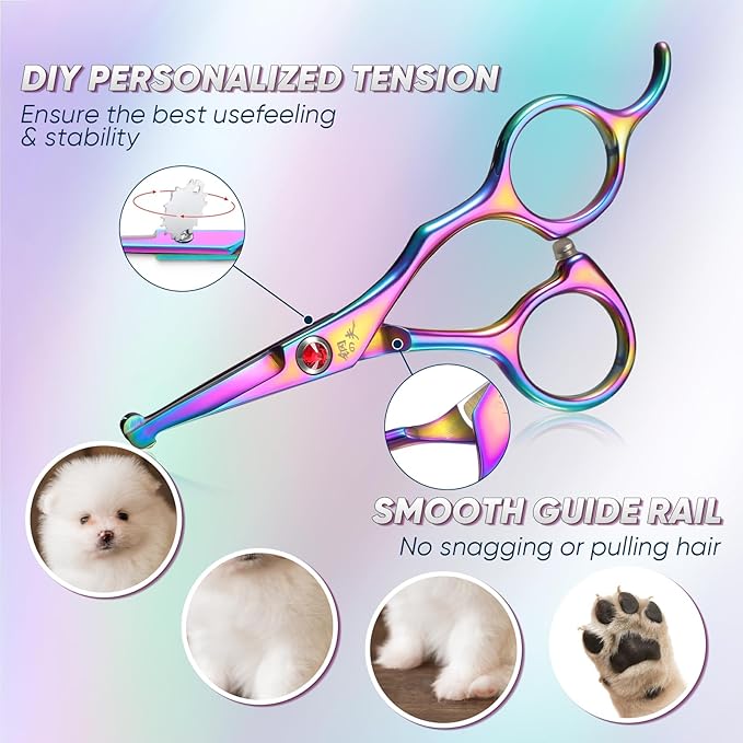 Small Dog Grooming Scissor -Rainbow Nose Hair Scissors with Safe Round Tips, Pet Scissors for Detailed Trimming, Japanese Stainless Steel,Ideal Gift