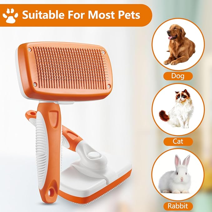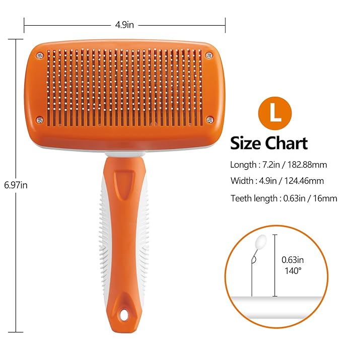 Self-Cleaning Slicker Brush for Dogs and Cats - Removes Loose Hair and Pet Fur (Large, Orange)