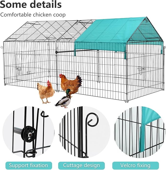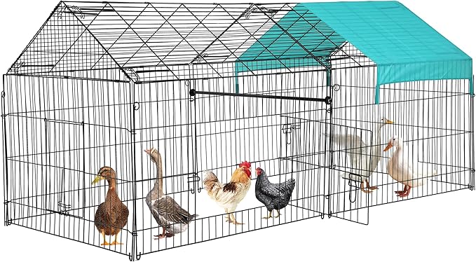 - ✔【Anti-Rust Metal Exercise Pet Pen】Epoxy coating finish extends the life of the chicken run and provides resistance against rust, corrosion, and fading, even in the most extreme climates. Pet fence with door pet exercise pens pet fence.Chicken Coop Chicken Run Chicken Pen Rabbit Hutch