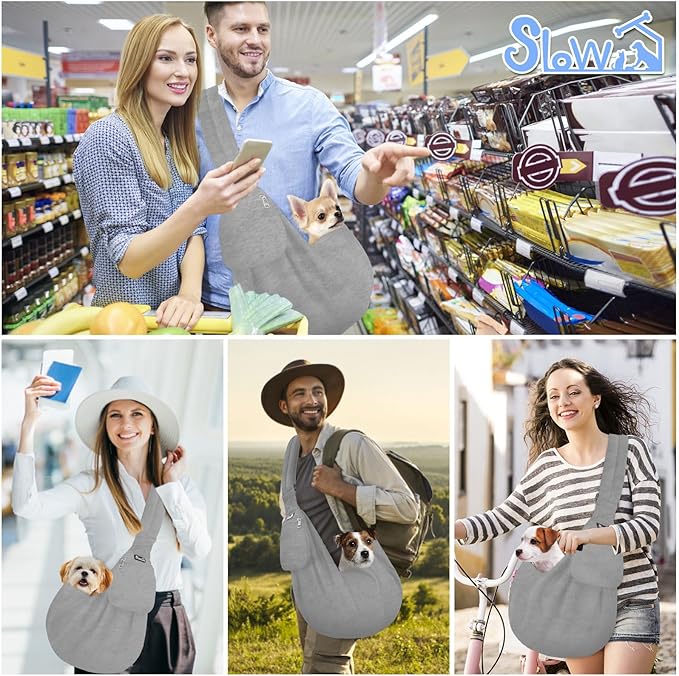Lukovee Pet Sling, Hand Free Dog Sling Carrier Adjustable Padded Strap Tote Bag, Shoulder Bag with Safety Belt & Front Pocket for Small Dog Cat Puppy (Grey-WY,M)