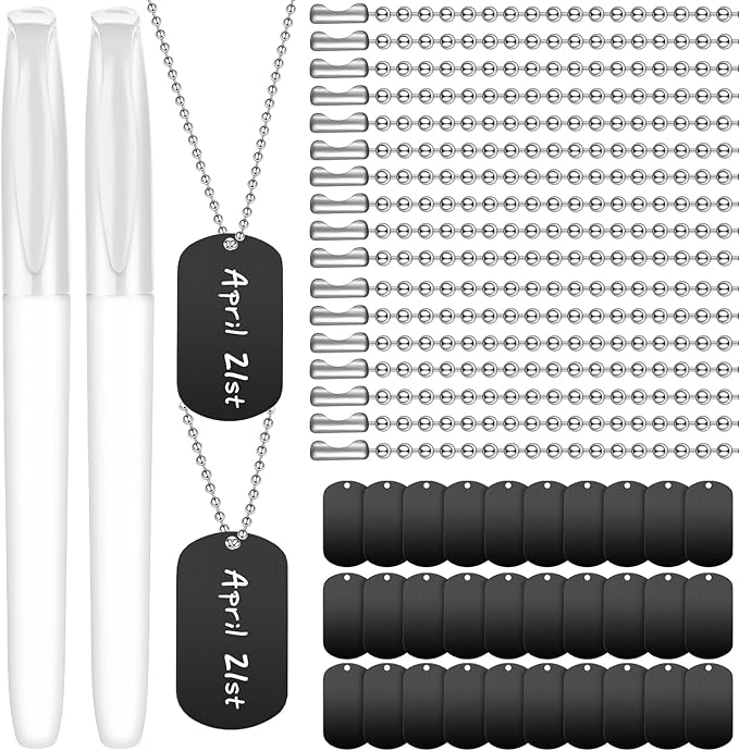 - Complete Set: the package contains 30 pieces of aluminum alloy blank dog tags, 30 pieces of 24 inch dog tag chains and 2 erasable white marker pens, which can be DIY designed into 30 different dog tag necklaces, share with your relatives and friend