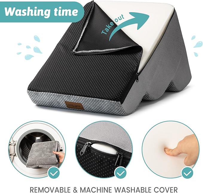- 【EASY TO ASSEMBLE or CLEAN】For easy transportation, the dog stairs are purchased in vacuum COMPRESSION PACKAGING. After opening the vacuum packaging, cover it with a leakproof cover. After 48 hours of complete absorption of air, it will return to its original stair shape. Wait for the shape to recover. The leakproof cover supports machine washing or hand washing. Note: Please do not wash the sponge foam.
