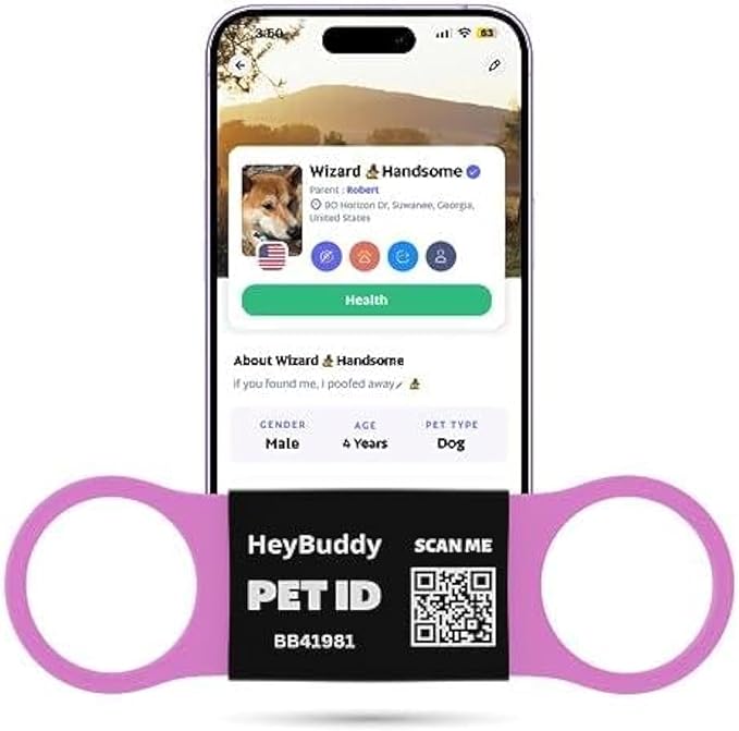 - 【Updatable Profile】With our HeyBuddy pet tag, you can effortlessly update your pet's profile information directly from the app. Say goodbye to the hassle of purchasing new pet tags every time your details change.