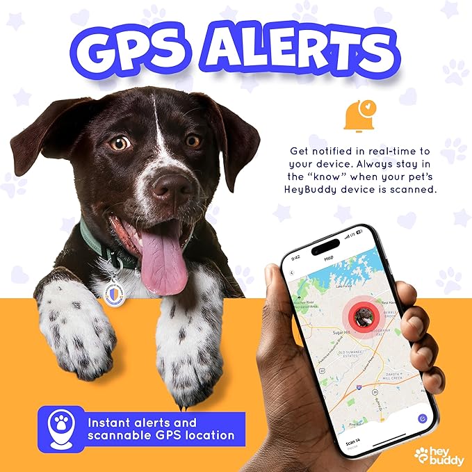 - 【ALERT Community】In the unfortunate event that your pet goes missing, our HeyBuddy pet tag allows you to alert your entire community with just a few clicks. You can generate a personalized lost pet flyer directly from your pet's profile.
