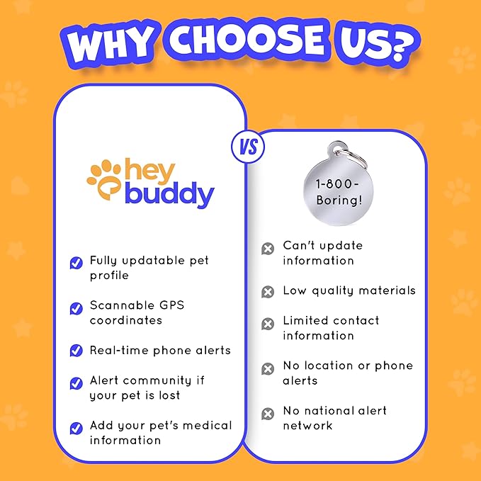 - 【Your Pet's New Identity】Your pet tag just got smarter. The all-in-one solution to pet safety! Join over 300,000 other pets around the world, secured by HeyBuddy.