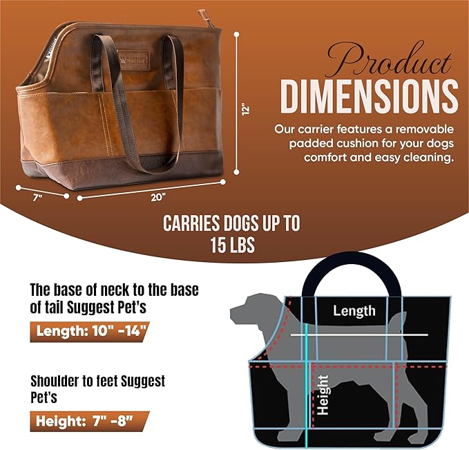 - ✅ Sized for Small Dogs – Check the Fit Before Purchase: This carrier measures 18.5"L x 7"W x 11"H and supports dogs up to 15 lbs, making it ideal for breeds like Chihuahuas, Yorkies, and Maltipoos. Please measure your pet (neck to tail and floor to shoulders) to ensure a comfortable fit before ordering.