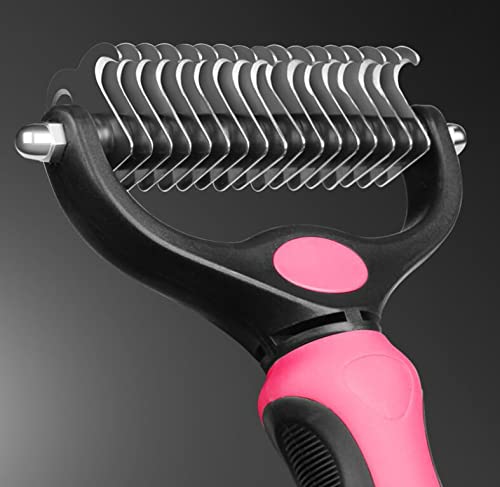 Pet Grooming brush comb -Undercoat rake for dogs, double sided Shedding and Dematting Undercoat combo (light pink)