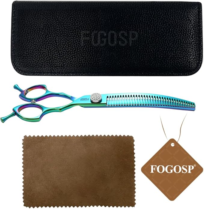- 💝Multipurpose: 30°classic arc, meeting the needs of most arc trimming work. A cut not only perfectly presents a beautiful curve, but also thinning the hair. 7.5 inch dog grooming scissors for groomers quickly and efficiently for medium and large dogs to trim a fluffy and natural curve effect. FOGOSP professional curved chunkers shears for dog grooming , with one trim, have the same effect as normal scissors with 4-5 trims. 80% thinning rate , greating improve the work efficiency of groomers.
