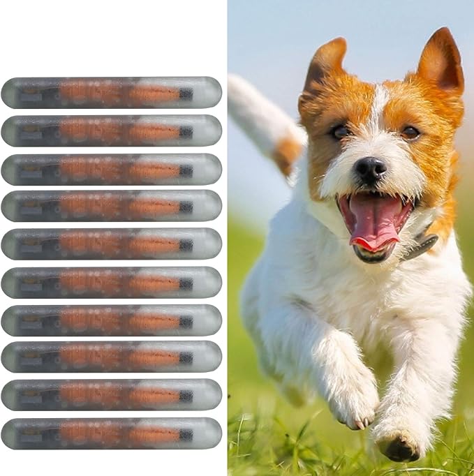 Mini 1.25mm Microchip for Dogs and Cats, Lightweight Label Glass Tube Chip Glass Tube Animal Tag Reader Pets Suppliers Shot Records for Pet Dog Cat Cow Pig Rabbit Fish Puppies 10 Pack