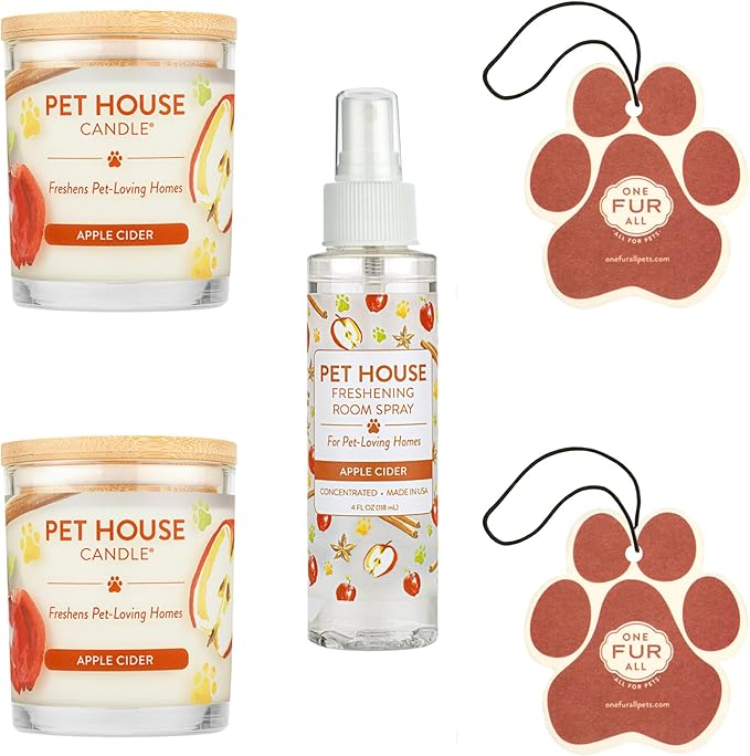 One Fur All Value Pack, Pet Candles, Room Spray and Car Air Freshener, Plant-Based Scented Pet Odor Candles and Long Lasting Air Fresheners - Apple Cider