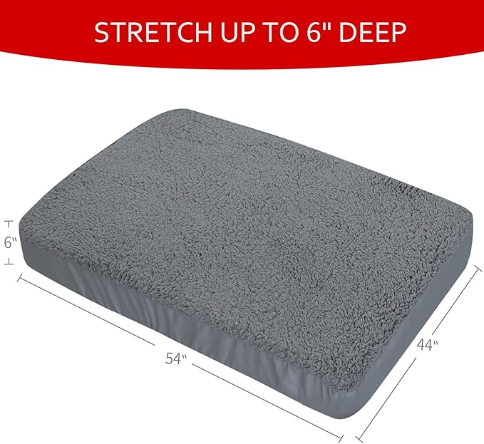 Dog Bed Covers Soft Plush Replacement Washable, Waterproof Dog Bed Liner Grey, Dog Mattress Cover, Pet Bed Cover 54x44 Inches, for Dog/Cat, Cover Only