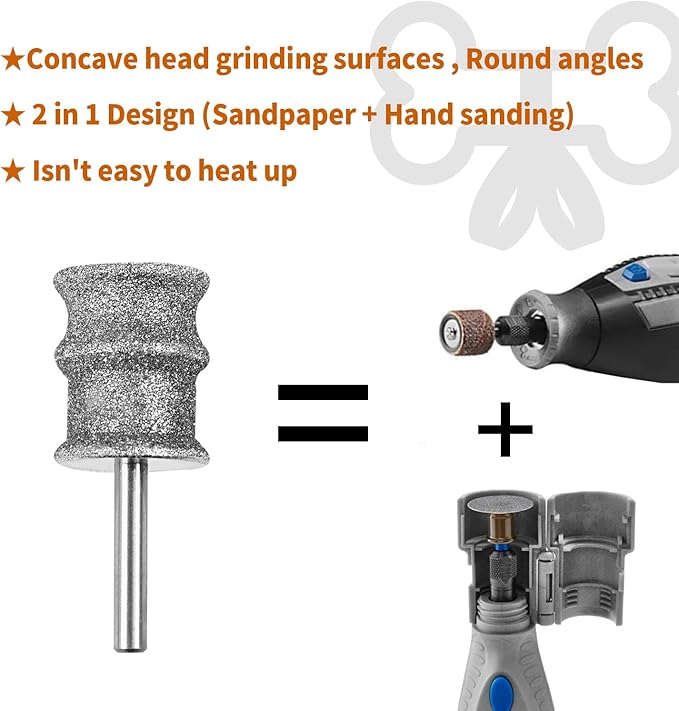- The grinding efficiency of the diamond grinder bit head is very high, which can perfectly replace the traditional sandpaper and nail clippers. Its side, concave, head can be polished nails, very simple