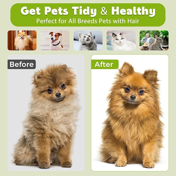 - Get Pets Tidy and Healthy - This cat hair brush is a nice grooming tool for fur baby owners. Regularly groom and shed your pets, remove loose hair, tangles, knots, dander, dirt, not only can keep them tidy, but also improve blood circulation, make them healthy.