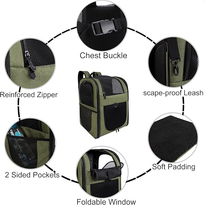 - ESCAPE PROOF- The last thing you want is an escaped pet running around the airplane cabin or outdoors. APOLLO WALKER pet backback carrier keeps your pet safe and secure while flying, walking, cycling, or hiking with claw-proof mesh and reinforced zippers. Carrier also has a leash tether to attach to your dog or cat’s collar if you decide to open the top window to let your pet stick their head out.
