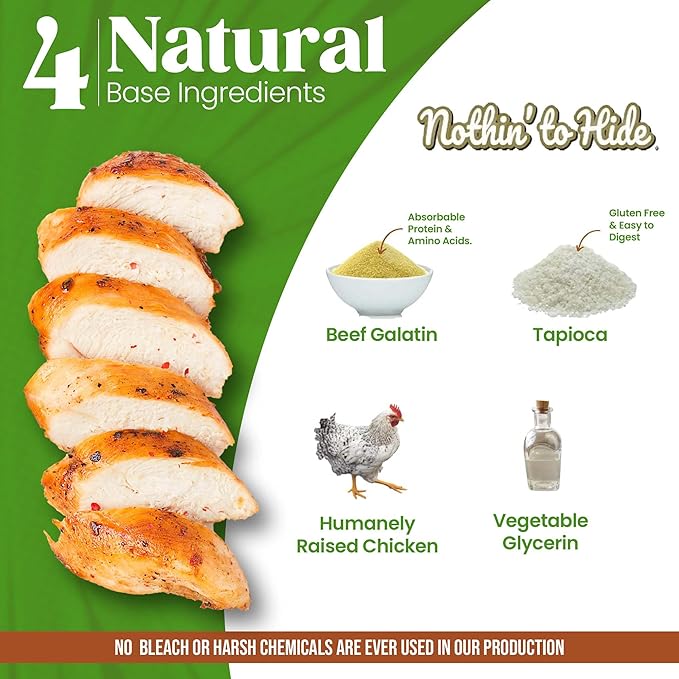 - Fieldcrest Farms Nothin' to Hide Chicken-Flavored Flip Chips are collagen-based chews that offer your pet a long-lasting, highly digestible treat.