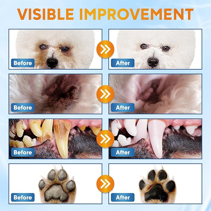 Dog Wipes Cleaning Deodorizing, Dog Grooming Wipes & Dog Paw Cleaner, Pet Cleaning Kit for Teeth, Ears, Eyes, Paw, Body, Dog Ear Rinse, Essential Dog Supplies Set
