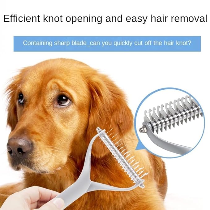 - DOUBLE SIDED DEMATTING COMB - Dematting comb with the 9+17precision teeth,That has a different number of teeth on each side.The lower density side is a dematting rake for stubborn matts and tangles. The higher density side is a detangler, deshedding tool, or undercoat rake for faster results thinning and to control shedding;No hurting or scratching