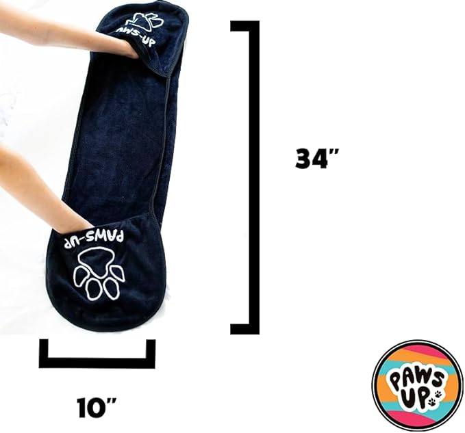 - This is the XL "Mega" version of the famous PAWS UP TOWELS measuring a whopping 34"X10". No dog is too big for the XL Towel. Wiping paws or drying, this will handle the task regardless of the size of your best friend.