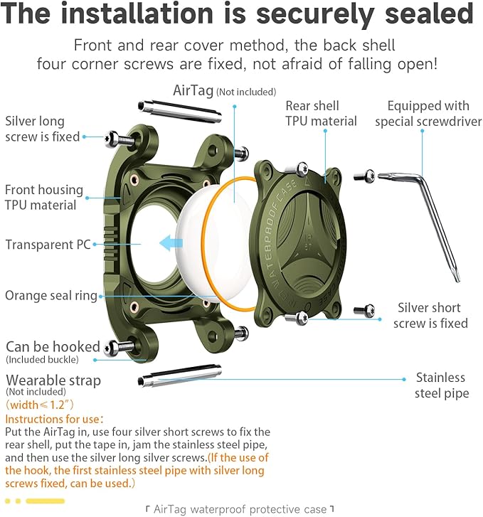 - 【Comfortable & Durable Dog Airtag Holder】 Airtag holder for dog collar With 4 special screws to close, Silicone sealing ring in the middle, the air tags will never fall off from the holder. This air tag dog collar holder is firm and sealed, with anti-theft.