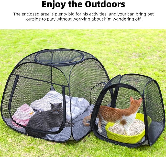 Tenrai Portable Cat Playpen, Trapezoidal Design for Better Standing, Foldable Pet Tent for Outdoor and Indoor Use of Puppy and Kitten, Dog Play Enclosure, Cat Houses & Condos