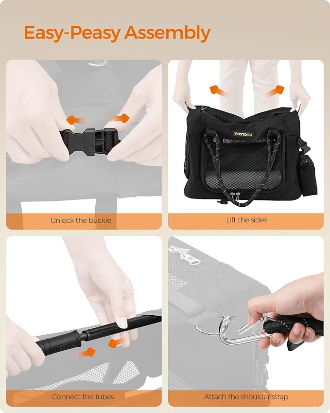- [Safe, Comfy, Practical] Made with a steel frame, waterproof Oxford fabric, breathable mesh, and a fleece mat, this dog carrier offers a stable, safe, and comfortable haven for your pet on the way. Even better, the mat is removable for easy cleaning
