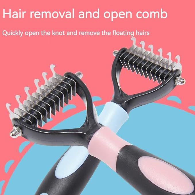 - Clear all different mats and tangles. The double sided pet comb has a different number of teeth on each side. The lower density side is a dematting rake for stubborn matts and tangles. The higher density side is a detangler, deshedding tool, or undercoat rake for faster results thinning and to control shedding.