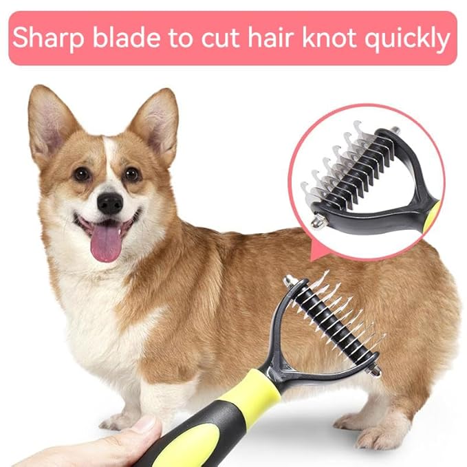 - Multiple uses with a single comb. The pet grooming tool not only works great as a dematting brush or detangling comb, but also as an undercoat comb or deshedding rake. The dematting tool for dogs and cats can comb to cut a matt or tangle then be used as a deshedding brush or deshedding comb