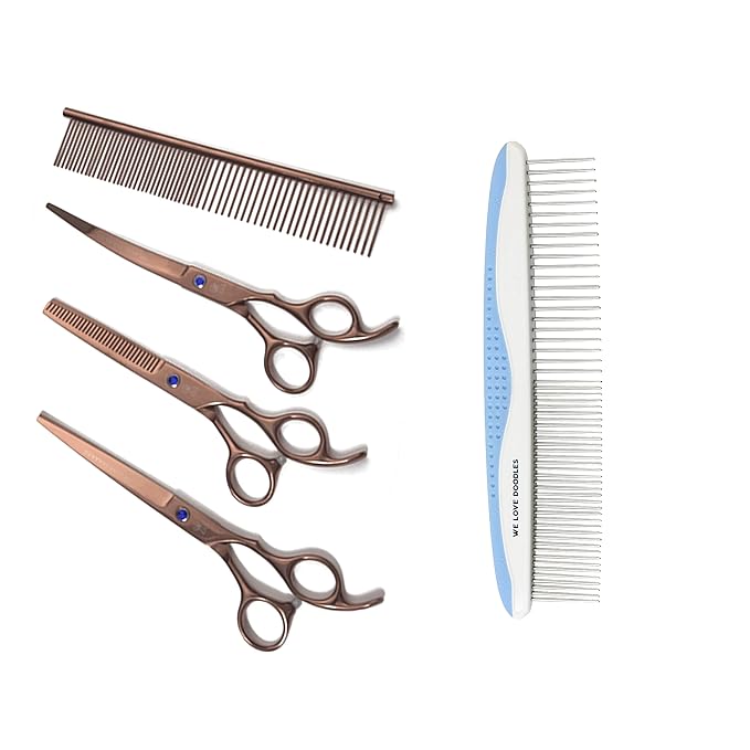 We Love Doodles Small Dog Grooming Comb & Dog Grooming Scissors Kit Bundle - Grooming Comb & Grooming Shears, Scissors and Scissors Kit - Removes Tangles - Made in USA