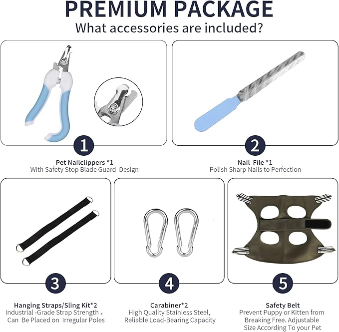 Cat/Dog Grooming Hammock Hanging Harness,Pet Grooming Restraint Sling with Wide Strap Anti Scratch&Bite,for Nail Trim/Take Eye/Ear Care with Nail Clipper/Nail File Pet Grooming Supplies Kit-M