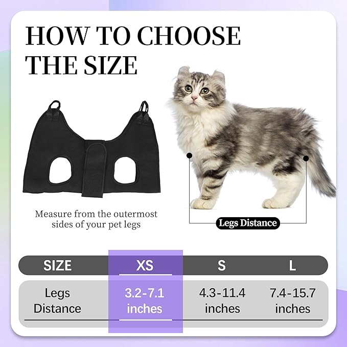 - 【Choose the Right Size】Our pet grooming hammock comes in three sizes: XS and S. 𝐁𝐞𝐟𝐨𝐫𝐞 𝐩𝐮𝐫𝐜𝐡𝐚𝐬𝐢𝐧𝐠, 𝐲𝐨𝐮 𝐡𝐚𝐯𝐞 𝐭𝐨 𝐦𝐞𝐚𝐬𝐮𝐫𝐞 𝐭𝐡𝐞 𝐝𝐢𝐬𝐭𝐚𝐧𝐜𝐞 𝐛𝐞𝐭𝐰𝐞𝐞𝐧 𝐲𝐨𝐮𝐫 𝐩𝐞𝐭'𝐬 𝐟𝐫𝐨𝐧𝐭 𝐚𝐧𝐝 𝐛𝐚𝐜𝐤 𝐥𝐞𝐠𝐬. 𝐓𝐡𝐞𝐧 𝐚𝐜𝐜𝐨𝐫𝐝𝐢𝐧𝐠 𝐭𝐨 𝐭𝐡𝐞 𝐬𝐢𝐳𝐞 𝐜𝐡𝐚𝐫𝐭, 𝐲𝐨𝐮 𝐜𝐚𝐧 𝐜𝐡𝐨𝐨𝐬𝐞 𝐭𝐡𝐞 𝐦𝐨𝐬𝐭 𝐬𝐮𝐢𝐭𝐚𝐛𝐥𝐞 𝐡𝐚𝐦𝐦𝐨𝐜𝐤 𝐟𝐨𝐫 𝐲𝐨𝐮𝐫 𝐩𝐞𝐭.