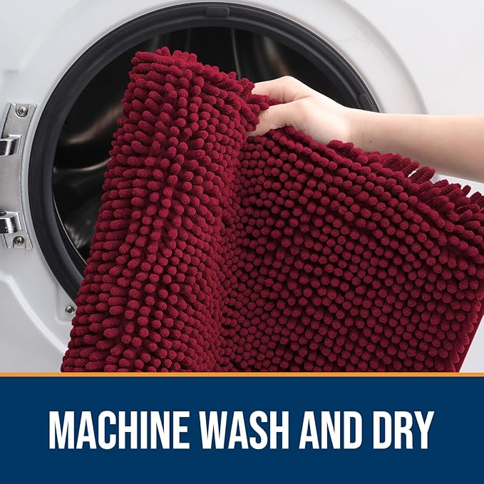OLANLY Dog Door Mat for Muddy Paws 47x24, Absorbs Moisture and Dirt, Absorbent Non-Slip Washable Mat, Quick Dry Chenille, Mud Mat for Dogs, Entry Indoor Door Mat for Inside Floor, Burgundy