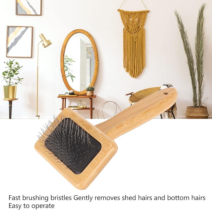 - Material】Composed of flexible stainless steel needles and liners, the wool carding brush is softly resilient when brushing and are not easily worn or broken. The handle of the grooming comb is made of bamboo material, finely polished with smoothly curves.