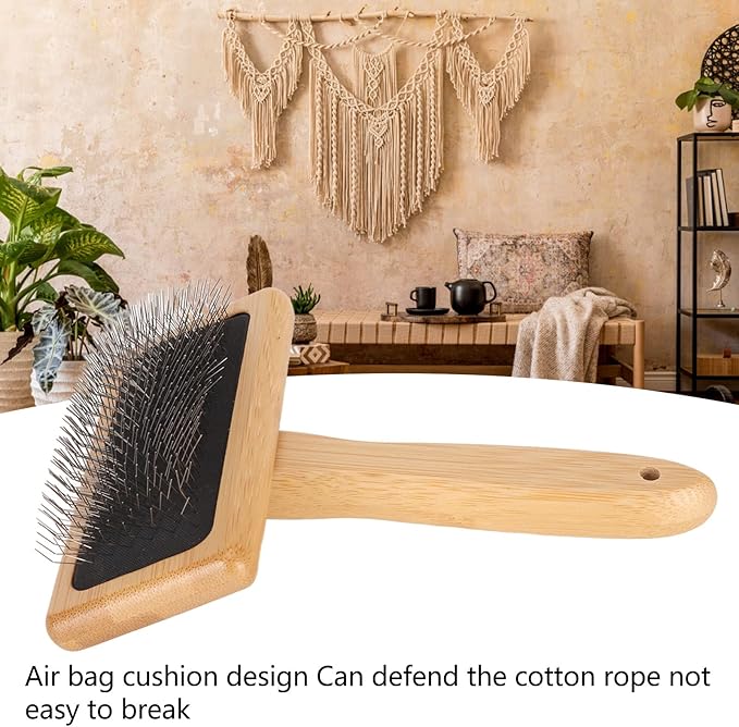 - 【Reliable Material】Composed of flexible stainless steel needles and liners, the wool carding brush is softly resilient when brushing and are not easily worn or broken. The handle of the grooming comb is made of bamboo material, finely polished with smoothly curves.